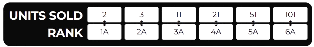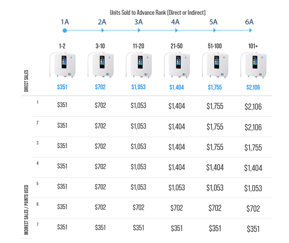 For example: You are 1A with two direct sales. You become 2A when you sell a 3rd unit. OR you can jump directly to 6A from a personal sale if the total amount of units sold in your team is at least 100.